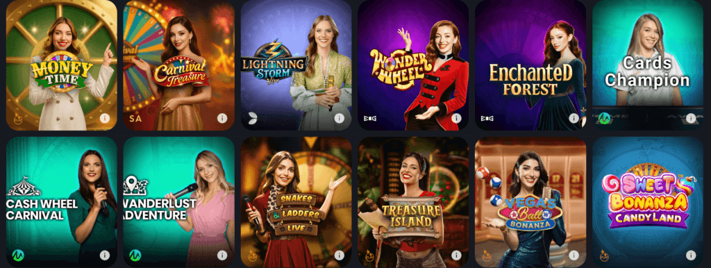 Sảnh game shows tại Bons Casino mang đến trải nghiệm mới mẻ, kết hợp giữa trò chơi truyền hình và cá cược trực tuyến. Người chơi có thể tham gia các game nổi tiếng như Crazy Time, Dream Catcher, Monopoly Live, và Deal or No Deal – mỗi trò đều có host trực tiếp, vòng thưởng độc đáo và các tính năng tương tác thú vị.