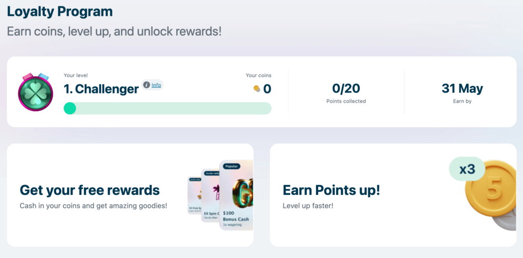 Thưởng Không Cần Nạp Tiền ít phổ biến hơn nhưng đôi khi Vera&John có thể cung cấp cho người chơi mới như một phần của ưu đãi đặc biệt hoặc cho người chơi trung thành.